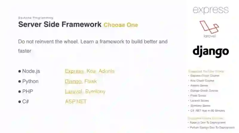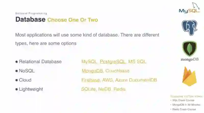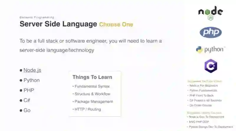 成为一个全栈工程师或软件工程师, 你将需要学习一个服务端语言和相关技术