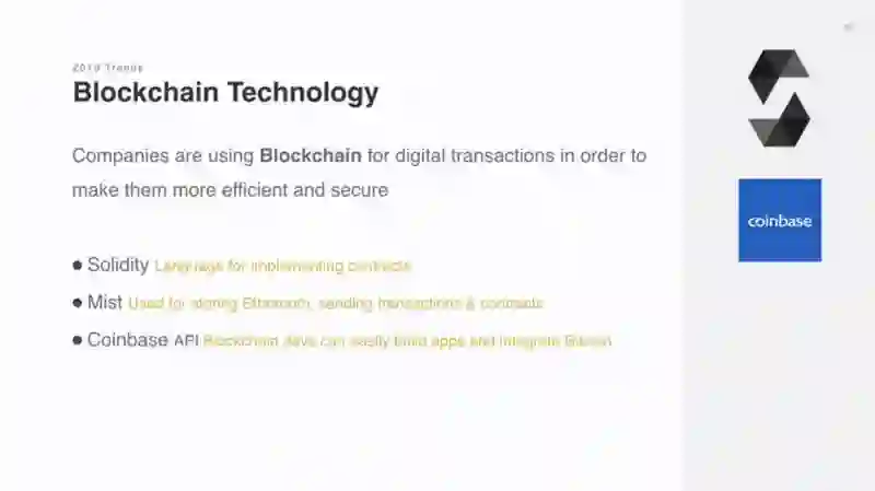 现在许多公司使用区块链技术进行数字交易, 因为它们更安全和有效率.