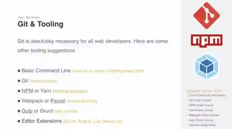 Git绝对是每一个Web开发者必须掌握的工具, 这里也有一些其他的工作流工具的建议.,