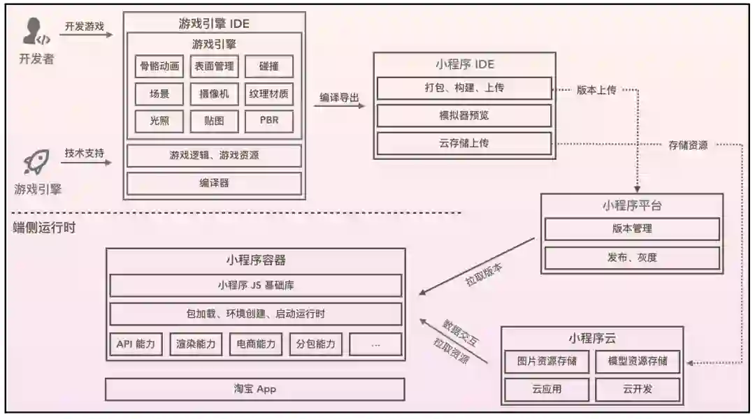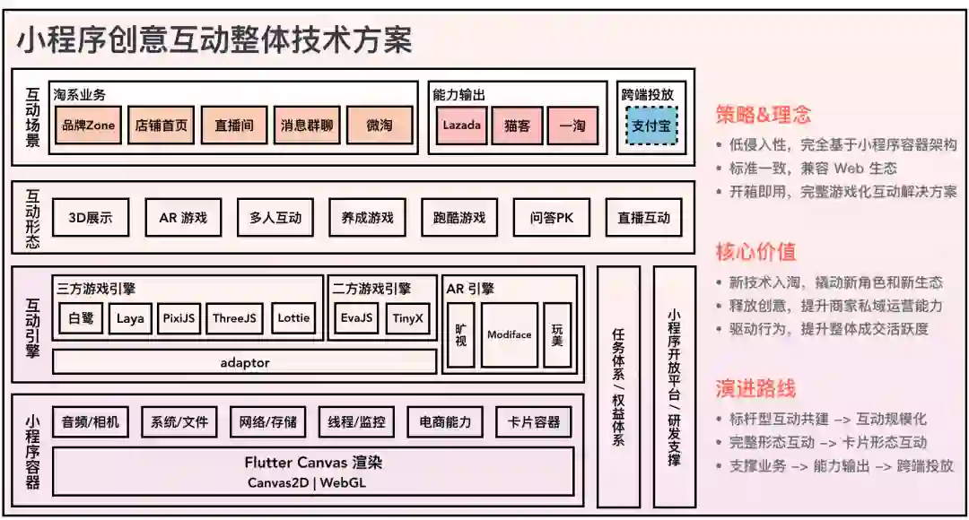 阿里妹导读:小程序创意互动项目,作为淘宝购物小程序全面提升消费体验和满足商家个性化运营的重点项目之一,从 2020 年 3 月底正式 KO 到今年双11,已经经历了多次迭代。在购物小程序技术、产品、运营团队同学的通力合作和共同努力下,初步实现了容器渲染层的替换、游戏引擎的谈判接入、多个引擎 IDE 的联动打通。小程序创意互动服务的旗舰店品牌 Zone、行业 3D 展示等业务也已有序铺开,项目本身的价值和意义开始逐渐展现。本文从一个较为全面的视角对淘宝小程序创意互动项目进行梳理和阶段性小结,介绍相关原理、能力、应用、现状与未来。