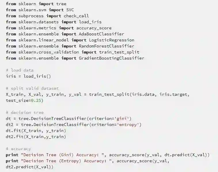 使用 sklearn 用决策树来进行莺尾花数据集的划分问题。代码上没有固定随机种子,所以每次运行的结果会稍有不同。