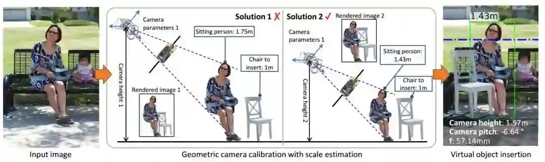 但目前还缺乏如此大规模的包含相机参数标注的数据集,只能通过间接利用2D标注数据来实现,并创造性地选择了最普遍的人体和汽车来作为参考物体实现3D尺度推理。