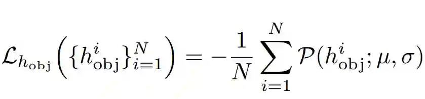 但这些预测的结果还不足以获得绝对的尺度,场景尺度依旧无法确定。为此,研究人员利用了数据集中的先验信息来为目标建立监督。具体来讲,通过数据集中的统计信息来拟合高斯先验 (人体高度1.70±0.09m,车辆1.59±0.21m) 。针对高度为hobj的目标和先验高斯分布P,可以将损失定义为下面的形式: