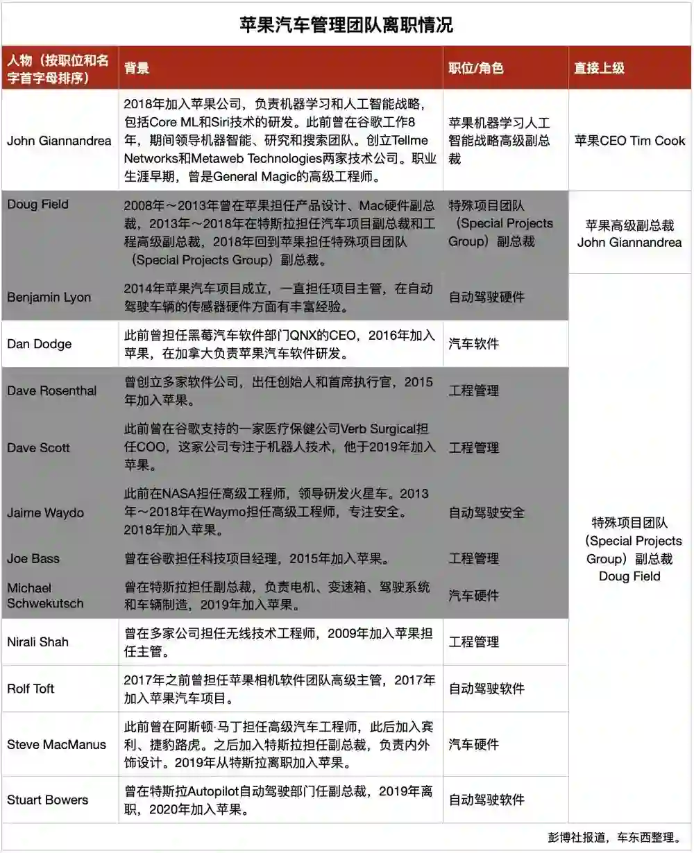 ▲2020年至今苹果造车高管半数以上已经离职(灰色为已离职)