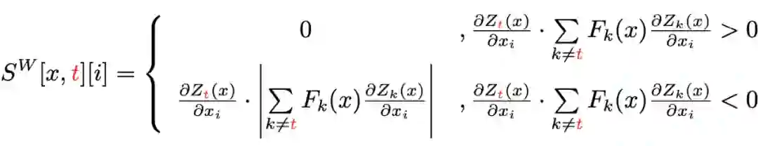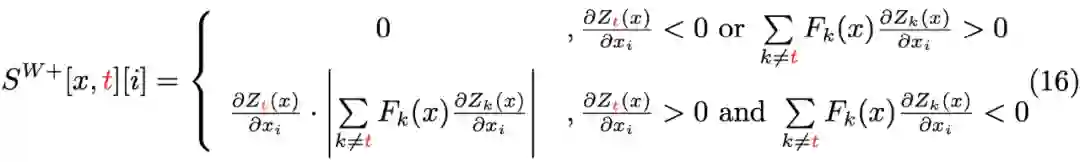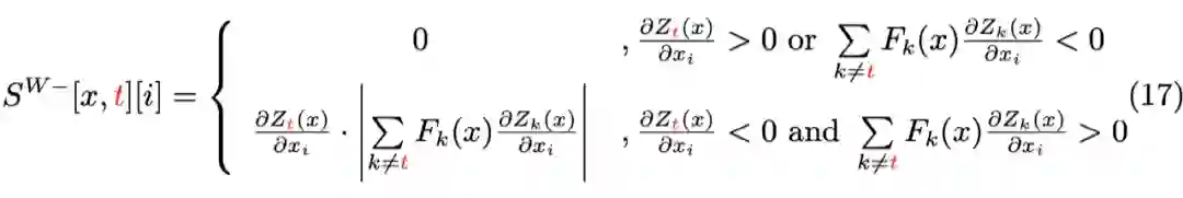 对比 WJSMA 和 JSMA 的算法可知,WJSMA 将神经网络的输出概率作为 Saliency Map 的权重,这样就能够更加合理 对不同类别的 Saliency Map 的信息进行有针对性的整合。论文中作者给出了一个实例(如下蓝色字体所示)来解释具有权重的 WJSMA 的优势。