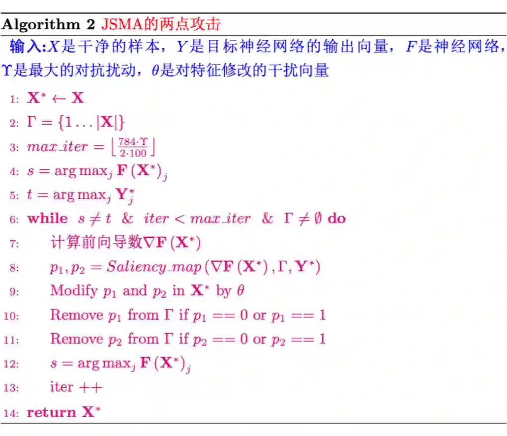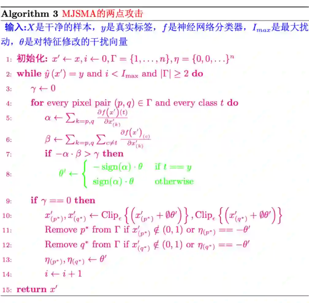 JSMA 的一个缺点在于只能进行有目标攻击,不能实现无目标攻击,而且攻击需要制定方向(即增加像素还是减少像素)。在 MJSMA 的论文中作者提出了 JSMA 的两种变体,一种不需要指定目标类,另一种不需要指定攻击方向(即增加或减少像素)。