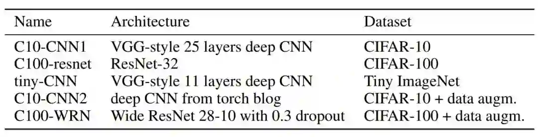 本节的目的是利用工具进行对各种层旋转设置进行实验研究。实验针对网络架构和数据集复杂度不一的五个任务进行,如表 1 所示:
