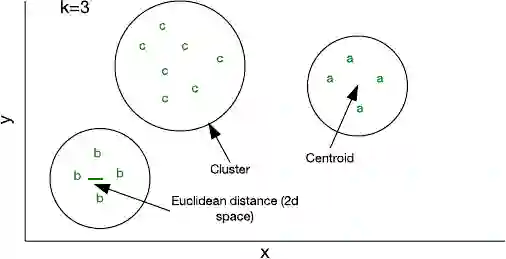 你可以使用少量代码就能实现的最简单的聚类算法是 k-均值(k-means)。其中,k 表示你为样本分配的聚类的数量。你可以使用一个随机特征向量来对一个聚类进行初始化,然后将其它样本添加到其最近邻的聚类(假定每个样本都能表示一个特征向量,并且可以使用 Euclidean distance 来确定「距离」)。随着你往一个聚类添加的样本越来越多,其形心(centroid,即聚类的中心)就会重新计算。然后该算法会重新检查一次样本,以确保它们都在最近邻的聚类中,最后直到没有样本需要改变所属聚类。