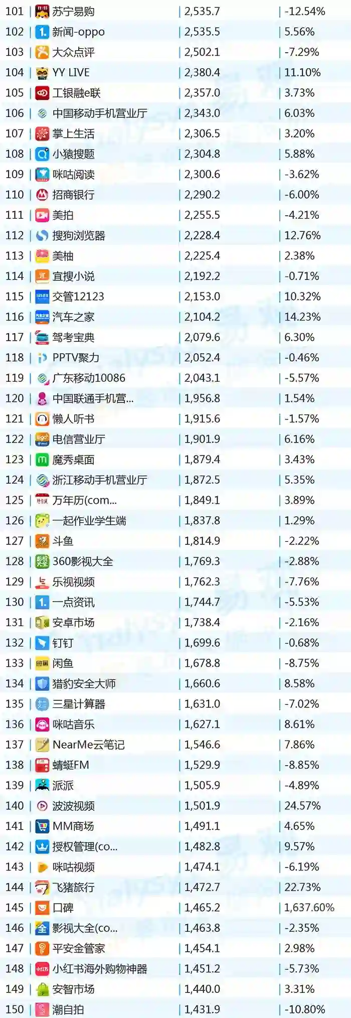 应用月活增幅TOP20中,因受到春运抢票需求的潮汐式增长铁友火车票和智行火车票,增幅均在37%以上,同时因为元旦小长假的来临,带动汽车及火车票务类预订规模整体上涨。