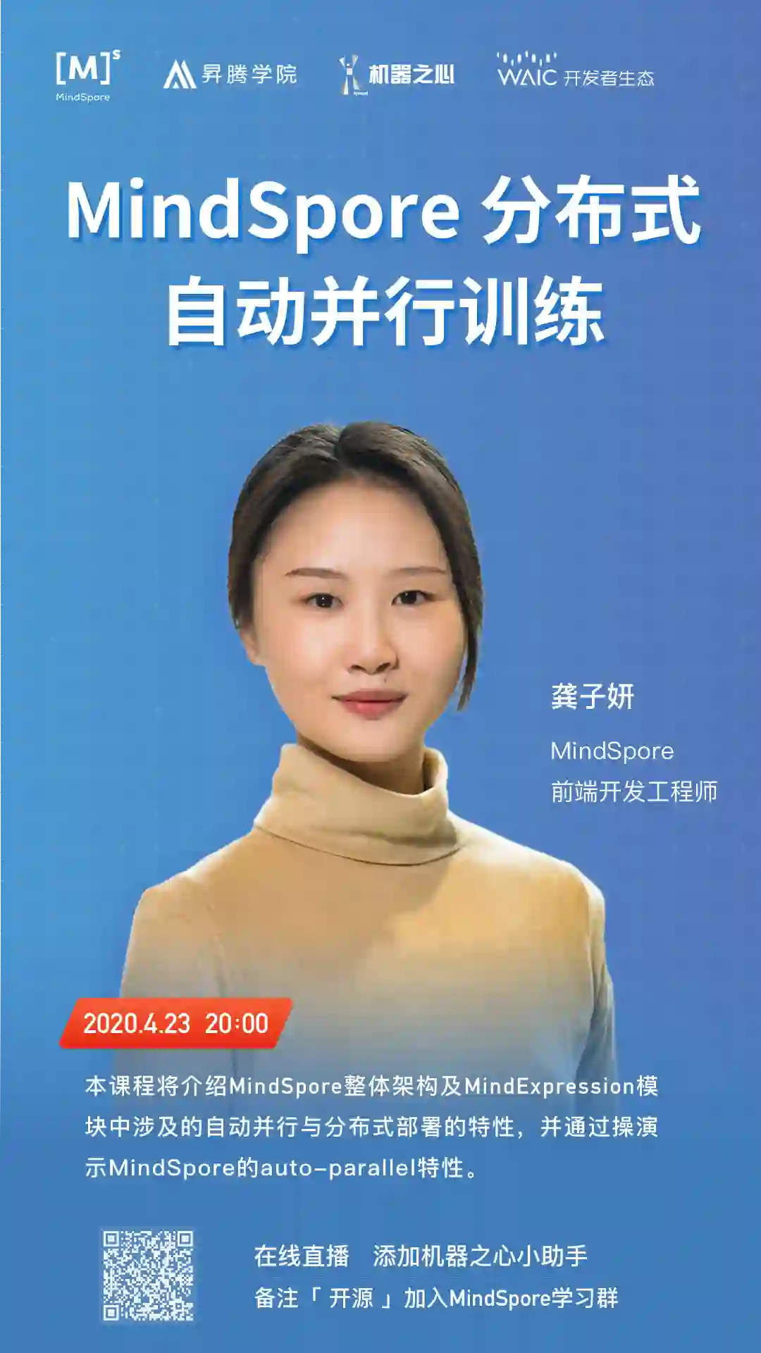 机器之心第二期「AI 开发者成长计划」系列公开课已正式开始,本期主题为《轻松上手开源框架 MindSpore》。该系列课程第一课将于 4 月 23 日 20:00 开讲,欢迎读者报名学习。