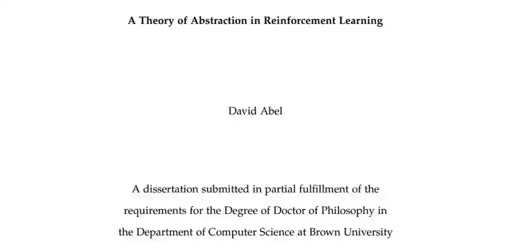 在前段时间结束的第36 届 AAAI 人工智能会议上,大会官方公布了新一届的 AAAI/ACM SIGAI 博士论文奖,其中一篇专门分析强化学习抽象理论的论文《A Theory of Abstraction in Reinforcement Learning》获得了该奖项提名。论文作者David Abel 博士毕业于布朗大学,他于近日将这篇博士论文上传到了arXiv上,共有295页。