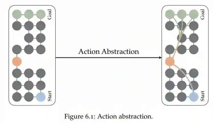 在第 9章中,作者介绍了一种将状态和行动抽象结合在一起的简单方案,利用这个方案,作者证明了状态和行动抽象的哪些组合可以在任何有限 MDP 中保持良好行为策略的表示,论文中定理9.1对此做了总结。接着,作者将研究这些联合抽象的重复应用,作为构建层次抽象的机制。在关于层次结构和底层状态行动抽象的温和假设下,作者证明这些层次结构还可以保持全局接近最优行动策略的表示,论文中定理9.3对此有阐述。