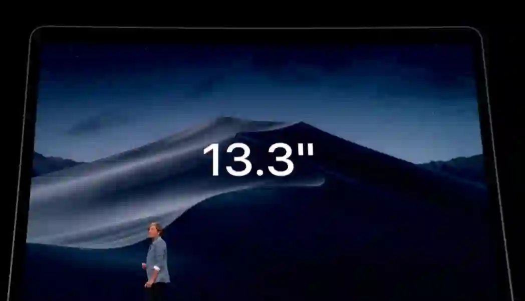 正如库克所说,全新 MacBook Air(2018款) 最明显的改进就是带来了 Retina 显示屏幕,同时采用了超窄边框设计,原有屏幕一侧的很宽的铝边框已经改良了,相比前一代缩减了 50%,因此屏幕大小扩大到了 13.3 英寸。