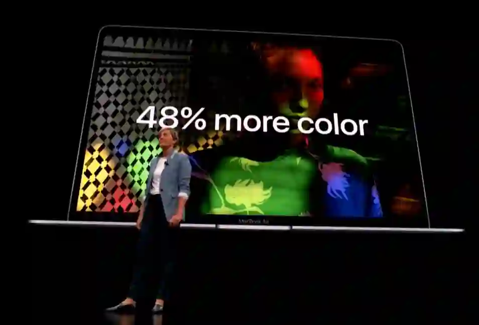 与此同时,新 MacBook Air 的色域增加了 48%,而且屏幕顶部边框即便收窄了之后,依然能够容纳进前置 FaceTime 摄像头。