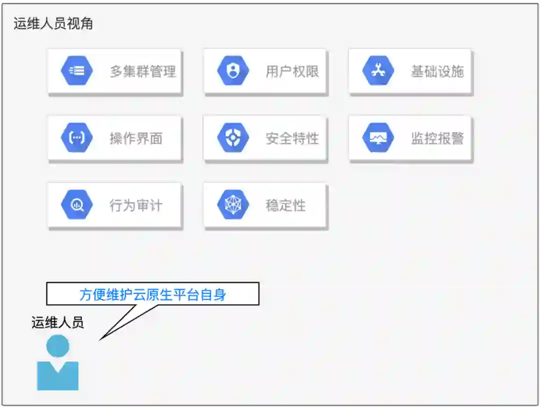 之前的探讨,都是以开发人员为受众去考量的,但我们不应该忘记维护着底层基础设施正常工作的运维人员。任何软件的稳定运行都只是暂时的,出问题只是一个时间问题。云原生平台本身作为开发人员的基础设施,也需要被持续的维护。如何优化运维人员的管理体验,也是在云原生平台设计过程中的重点。