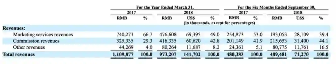 蘑菇街2017财年至2019财年上半年总收入,图片来自招股书