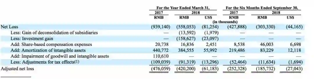 蘑菇街2017财年至2019财年上半年净亏损,图片来自招股书