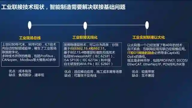 (2)IT与OT事实上也是在相互渗透的,自动化厂商都已在延伸其产品中的IT能力,包括Bosch、SIEMENS、GE等厂商在信息化、数字化软件平台方面,也包括B&R、Rockwell等在基础的IoT集成、Web技术的融合方面的产品与技术。事实上IT技术也开始在其产品中集成总线接口、HMI功能的产品,以及工业现场传输设备网关、交换机等产品。