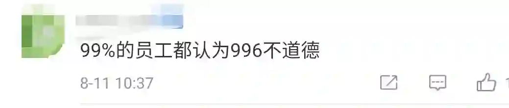 网友表示,这种样本数少的员工投票不作数啊,99%员工还认为996不道德呢。