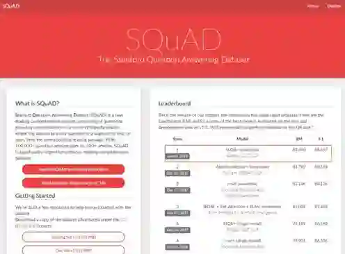 SQuAD比赛构建了一个大规模的机器阅读理解数据集(包含10万个问题),文章来源于500多篇维基百科文章。人工智能在阅读完数据集中的一篇短文之后,需要回答若干个基于文章内容的问题,然后与标准答案进行比对,得出精确匹配(Exact Match)和模糊匹配(F1-score)的结果。
