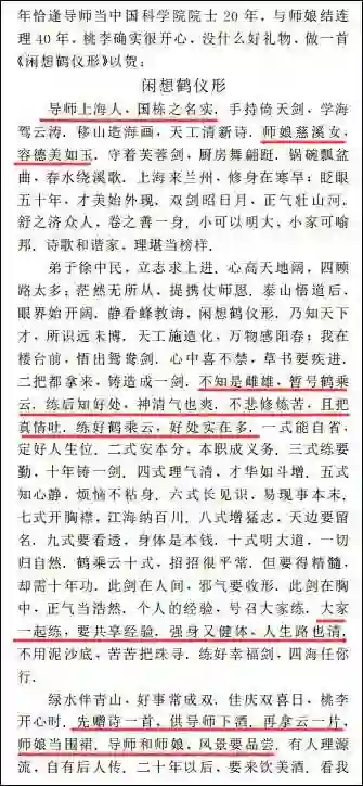 作者还在结尾部分写了一首《闲想鹤仪形》送给导师与师娘:
