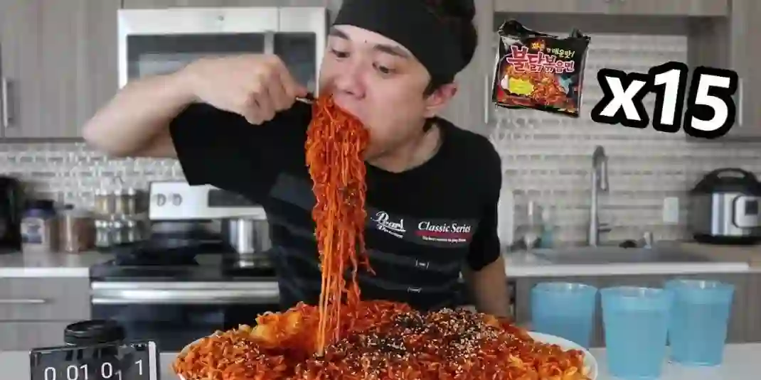 线下,热狗大赛和其他的竞争性饮食活动由来已久;电视真人秀节目中,有以奇怪的、腐烂的、异国风味的食物为主题进行的挑战,比如《恐惧因素》(Fear Factor)和《美食时间》(Epic Meal Time)等早期的YouTube节目。而现在,网上还出现了像“肉桂挑战”这样“丧心病狂”的食物接力挑战,还有YouTube上大热的吃播视频,以及上文提及的《爆辣挑战》这样通过明星挑战爆辣鸡翅的方式来进行宣传的节目。