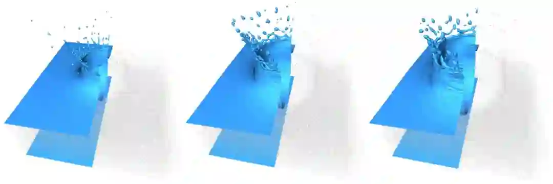 图 | 雨滴从上水层喷出水滴。该图显示了撞击后(从左起)三、六和九毫秒发生的变化(来源:Phys.org)