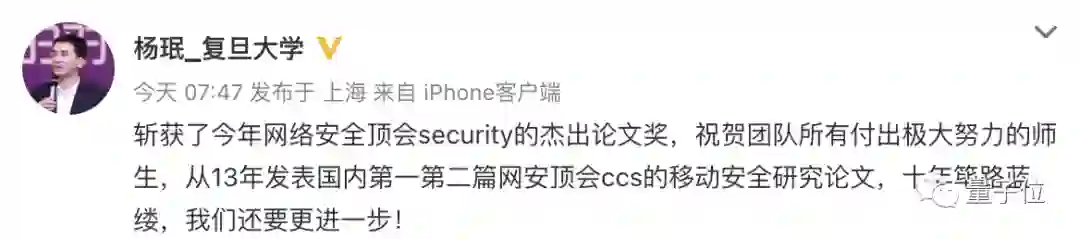 今年又有好消息传来——复旦大学教授杨珉等研究员发表的论文被评为“杰出论文奖”。