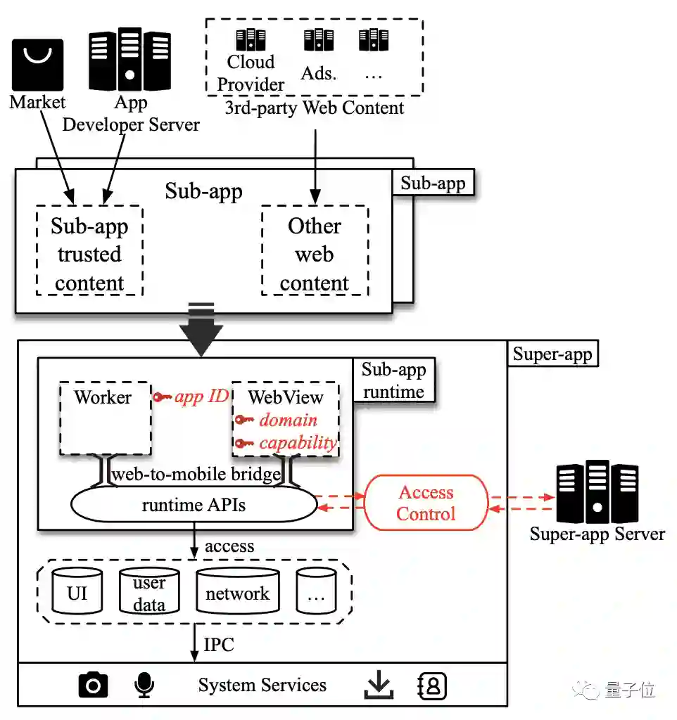 这些子APP不仅能像普通APP一样加载第三方资源,还可以访问APP提供的特权API(Application Program Interface)。