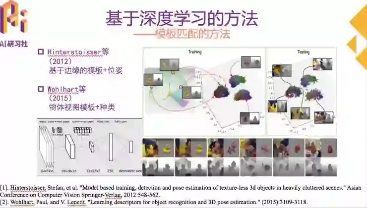 基于稀疏特征的方法和基于稠密图像块的方法,也就是随机森林的方法,都是属于学习的方法,但还不是属于深度学习的方法,接下来我们介绍的基于模板匹配的方法是真正属于深度学习的方法。