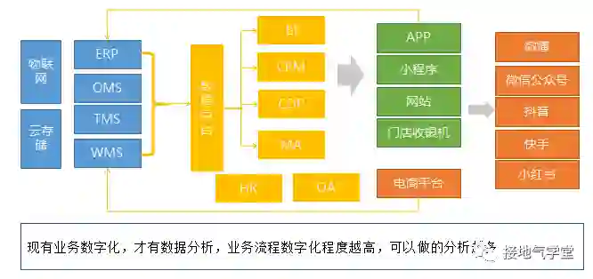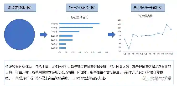 从抽样数据到全量数据,是一个质的变化。基于全量数据,可以直接管理到各个终端门店,直接基于数据作出经营决策。因此大部分企业的销售分析、经营分析、业务分析体系,都是在此基础之上建立起来的(如下图)。