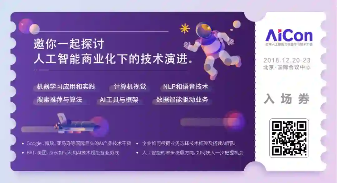 推荐一个年末不可错过的 AI 技术大会,学习来自 Google、微软、亚马逊、BAT、京东、美团、华为等 40+AI 落地案例的干货总结,大会日程已新鲜出炉,点击“阅读原文”即可查看。欢迎扫码下方二维码了解更多大会详情,也可咨询票务小姐姐 Amy 18514549229(微信同号)。