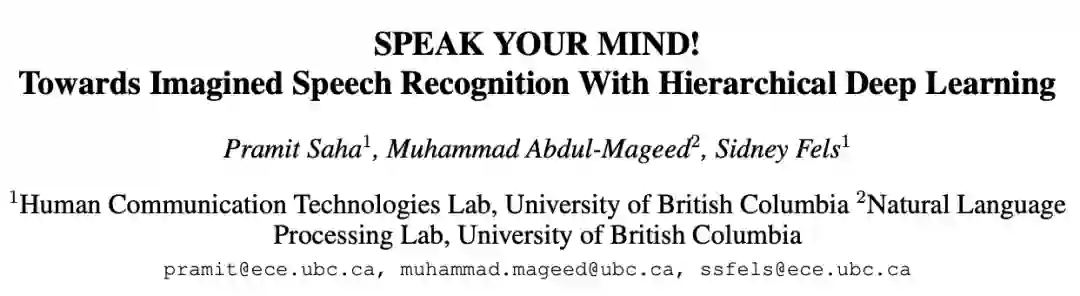 2. SPEAK YOUR MIND! Towards Imagined Speech Recognition With Hierarchical Deep Learning (说你所想!使用分级深度学习进行想象语音识别)