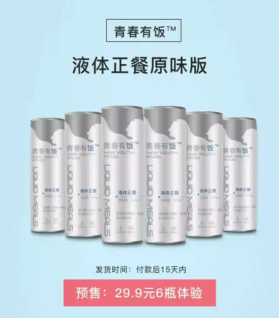 在中国,隆平科技园诞生的青春有饭,也经历了从粉末版到即饮版的完美升级!开罐即饮,随时随地都可以获得持续 4 小时左右的饱腹和一餐所需的所有营养。同时解决了“今天吃什么?”和“吃得实惠与健康?”两件麻烦事。