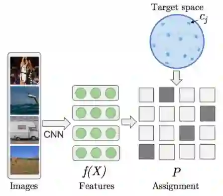 特别地,在训练过程网络参数的梯度下降交替之间,将伪目标重新分配给不同的图像,以便最小化损失函数。这里是ImageNet的视觉特征的结果;他们都是在ImageNet上训练AlexNet的结果,左边是目标,右边是提出无监督的方法。