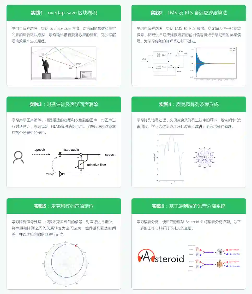 课程通过理论结合实践的方式,系统讲解语音信号处理技术背后的原理及应用,让大家高效入门,掌握语音信号处理的能力。