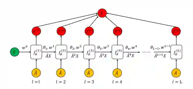 不同于其他直接堆叠图卷积层的图神经网络,AdaGCN在所有“层”之间共享相同的基础神经网络架构并进行递归优化处理,类似于RNN。