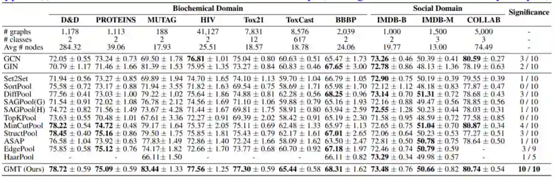 为了解决现有的图池化的限制,本文将图池化问题表述为带有关于图结构的辅助信息的多集编码问题,并提出了图形多集转换器(GMT)。该方法可以轻松扩展到以前的节点聚类方法,来进行分层图池化。实验结果表明,GMT明显优于其他图形池化方法,并在图重构和生成任务上获得很大的性能提升。
