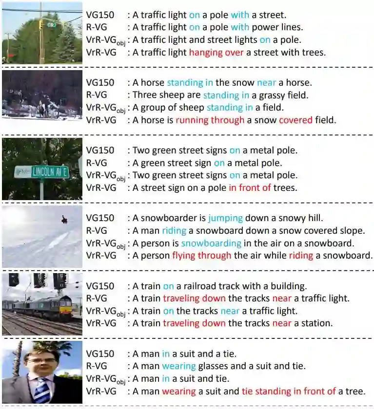 在我们的方法中,我们设计了一个视觉相关判别网络,通过网络自主的学习,分辨那些仅通过一些标签信息即可推断的非视觉相关关系,从而保证数据中留存的都是具有高语义价值的视觉相关关系。此外,我们设计了一个考虑关系的联合训练方法,有效的学习关系标签的信息。在实验中,我们从两个方面验证了我们的想法。关系表征学习中,在场景图生成任务上,我们的视觉相关关系有效的拉大了学习型方法与非学习型方法之间的性能差距,由此证明了非视觉关系是关系数据中的先验偏置且通过简单方法即可推断。另一方面,通过学习视觉相关关系,我们得到的特征具有更好的语义表达与理解能力。该特征也在问答系统、看图说话中展现出更好的性能,由此证明了视觉相关关系是真正需要被学习,且更有利于提升语义理解能力。
