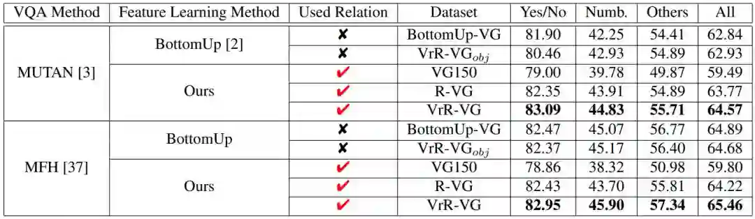 在问答系统实验中,通过学习视觉相关关系,特征具有更好的性能,在指标上有明显的提升。