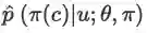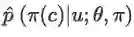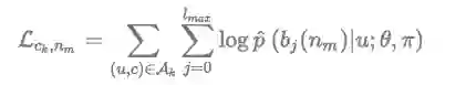 为模型 M 返回的用户 u 对节点 π(c) 的偏好概率的估计值,其中 θ 为模型的参数。