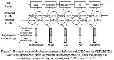 论文名称:GNTeam at 2018 n2c2: Feature-augmented BiLSTM-CRF for drug-related entity recognition in hospital discharge summaries