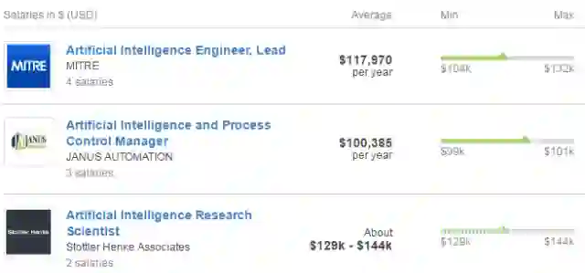 这并不仅仅是中国独有的现象。美国雇主评价 Glassdoor 网站在今年 4 月发布的一份报告中表示,人工智能研究科学家、人工智能工程师主管、人工智能与过程控制主管、高级人工智能工程师等职位平均薪酬总额均超过 10 万美元,而其他职位的平均薪酬总额也不过在 61k-93k 美元之间。