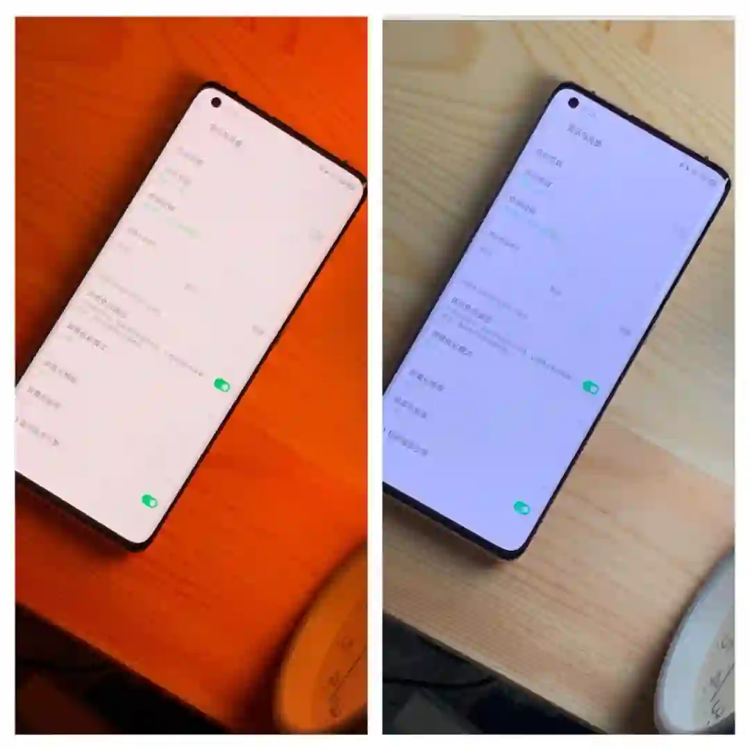 关于屏幕还有两个比较贴心的小功能,一是这次新增的环境色自适应功能,会根据环境光自动调节屏幕的色温,让屏幕显示和环境色有一个平滑的过渡,不会让手机屏幕显得刺眼。