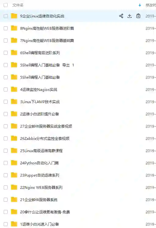 不仅如此我还利用工作空闲时间,录制了Linux全系列的视频,例如下面的