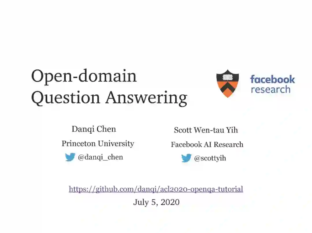 普林斯顿大学陈丹琦和 Facebook的Danqi Chen在ACL2020的tutorial-开放域问答