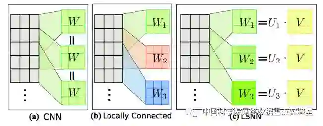 图1卷积层,局部连接层和LSNN之间的关系