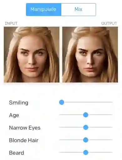 这是Glow模型的一个交互式Demo,感兴趣的读者可以移步官网体验试试,支持上传自己的照片调整脸部属性和合成两张图片。