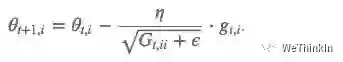 与SGD的核心区别在于计算更新步长时, 增加了分母: 梯度平方累积和的平方根。 此项能够累积各个参数 的历史梯度平方, 频繁更新的梯度, 则累积的分母逐渐偏大, 那么更新的步长相对就会变小, 而稀疏的梯度, 则导致累积的分母项中对应值比较小, 那么更新的步长则相对比较大。
