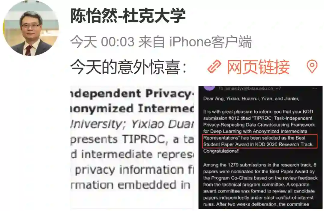 获奖论文:《TIPRDC: Task-Independent Privacy-Respecting Data Crowdsourcing Framework for Deep Learning with Anonymized Intermediate Representations》